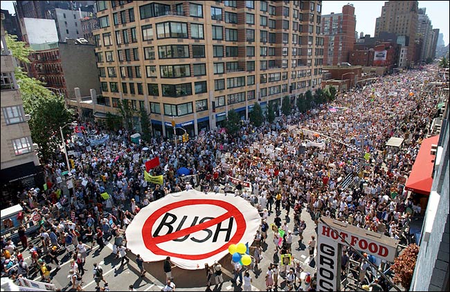 Among other things, any event must be open only to those with tickets tightly controlled by organizers. Those entering must be screened in case they are hiding secret signs. Any anti-Bush demonstrators who manage to get in anyway should be shouted down by “rally squads” stationed in strategic locations. And if that does not work, they should be thrown out.